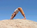 Na początku wydaje się trudny, ale tak nie jest. Siadamy na podłodze, stopy rozstawione na szerokość bioder. Tułów trzymamy prosto, dłonie opieramy płasko przy pośladkach, kierując palce w stronę nóg. Przyciągamy brodę do piersi, po czym odchylamy głowę jak najdalej do tyłu, jednocześnie unosząc tułów do pozycji równoległej do podłoża, tak aby stawy łokciowe pozostały wyprostowane a podudzia tworzyły kat prosty z podłożem (fot. 4). Mówiąc prościej tułów powinien być w linii prostej z udami, równolegle do podłoża a ramiona i podudzia – prostopadle. Również i w tym rytuale oddychanie jest bardzo ważne. Podnosząc tułów robimy głęboki wdech, wstrzymujemy powietrze napinając mięśnie i powracając do pozycji wyjściowej (pochylamy głowę do przodu) - głęboki wydech.