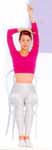 4. Siedząc na krześle, jedną rękę wyprostuj nad głową. Drugą złap łokieć ręki wyprostowanej. Odpychaj jak najmocniej do tyłu wyprostowaną rękę. Potem zmień ręce. Powtórz ćwiczenie kilka razy. |