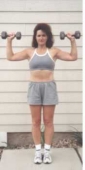 INSTRUKCJE: Bierzemy hantle w ręce i podnosimy je do góry tak, by znajdowały się na jednej linii z uszami. Jednocześnie obydwa hantle podnosimy do góry aż hantle się prawie dotkną. Następnie opuszczamy wracając do pozycji wyjściowej i powtarzamy.