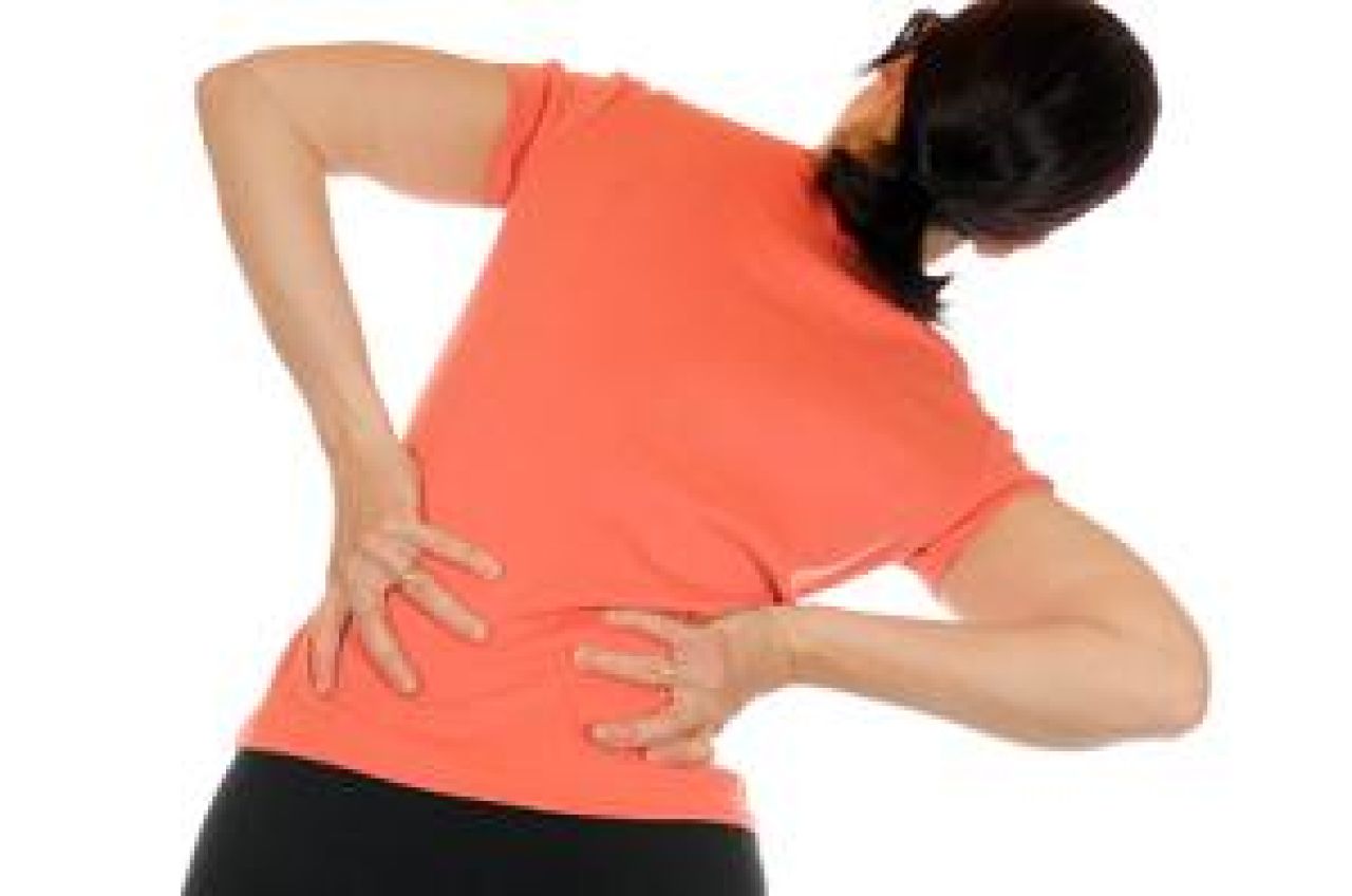 Ćwiczenie na bóle pleców: 1. Połóż się na brzuchu. Lewą dłoń podłóż pod głowę i oprzyj na niej czoło. Postaraj się, aby czubek twojego nosa prawie dotykał podłogi.