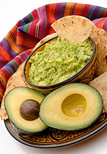 Z awokado usunąć pestkę, obrać ze skóry i rozetrzeć na pastę. Dodać zmiażdżony ząbek czosnku, jogurt, sok z limonek oraz chilli. Wymieszać na gładką masę. Podawać do chipsów z tortilli oraz z warzywami (kawałki papryki, liście sałaty).