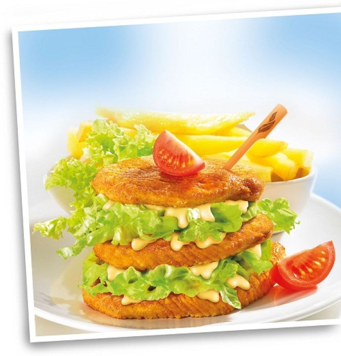 Jogurt należy wymieszać z 1 łyżeczką przyprawy, następnie dodać pokrojoną w paski kapustę lub sałatę i odstawić na kilka minut. Każdy filet rozbić cienko, posypać z każdej strony ½ łyżeczki przyprawy i pokroić na 3 równe części. Jogurt z kapustą ponownie przemieszać. Złożyć piramidki w następującej kolejności: filet, 1 łyżeczka kapusty z jogurtem, filet, 1 łyżeczka kapusty z jogurtem, filet. Całość przepić szpadką. Podawać z frytkami. Proste prawda? Smacznego!