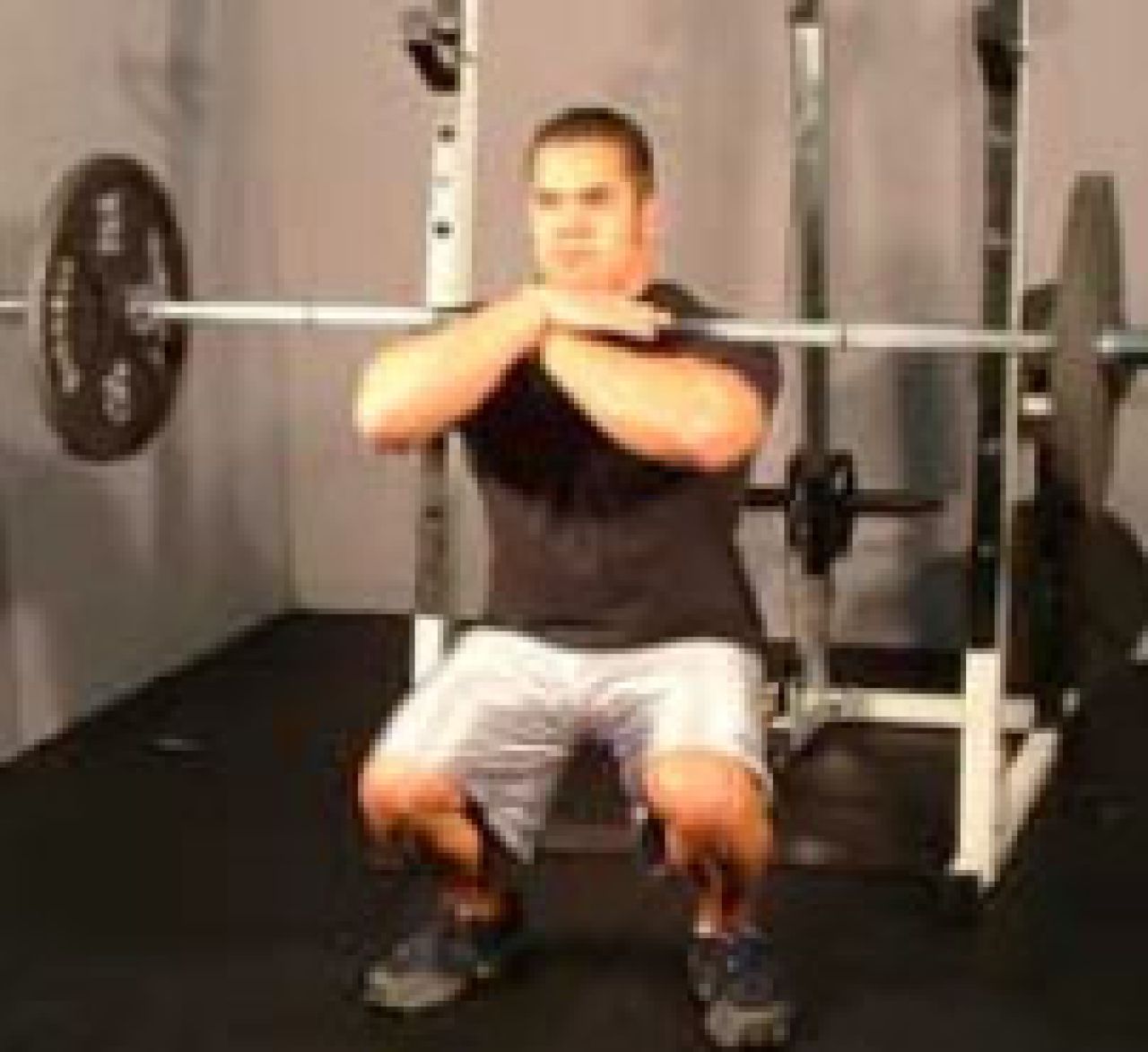 Niezależnie od tego jak sztangę chwycimy, powinna ona leżeć na górnej części mięśni klatki piersiowej. Nie może się ona z niej zsuwać. Zsuwanie wymusza na nas bowiem pochylanie tułowia do przodu i wyginanie kręgosłupa w koci grzbiet. Doskonałym zabezpieczeniem przed tym jest unoszenie łokci wysoko w górę (łokcie powinny być wyżej niż sztanga) oraz wypychanie klatki piersiowej do przodu.