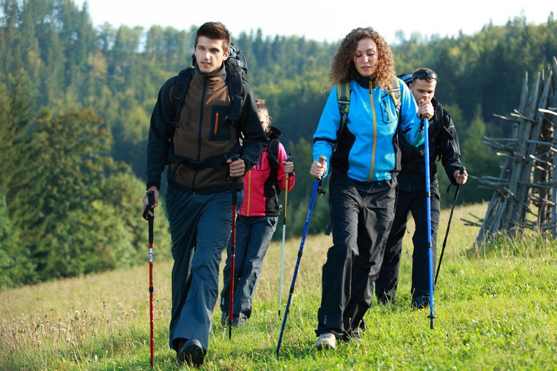 O ile hiking, poza dobrym obuwiem, nie wymaga specjalnego ekwipunku, o tyle chcąc spróbować swoich sił w nordic walkingu musimy liczyć się z dodatkowym wyposażeniem w postaci specjalnych kijów. Ta forma rekreacji powstała w Finlandii jako letni trening dla narciarzy biegowych. W ciągu ostatnich lat maszerowanie z kijami staje się coraz popularniejsze w naszym kraju. Nie bez powodu. W porównaniu do marszu, nordic walking angażuje mięśnie klatki piersiowej, ramion i brzucha. Dodatkową zaletą tej formy aktywności jest większe spalanie kalorii, niż przy chodzeniu bez kijów oraz ograniczenie nacisku na kolana, biodra i plecy, co doceniają szczególnie osoby starsze. Najlepsze efekty można osiągnąć stosując specjalne techniki marszu. Przed rozpoczęciem treningów warto zasięgnąć rady instruktora lub zapoznać się z materiałami, dostępnymi w internecie.