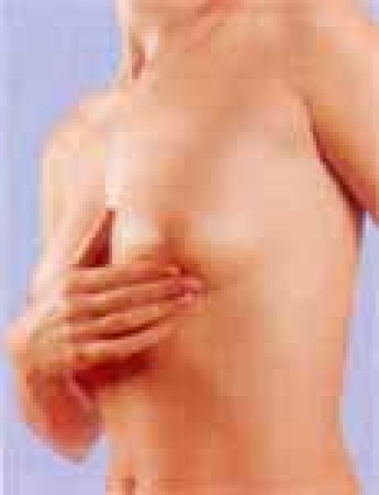 2. Stojąc przed lustrem wyprostuj plecy i powoli unieś w górę jednocześnie obie ręce, a potem równomiernie je opuść. Powtórz ten ruch kilka razy i obserwuj w tym czasie obie piersi, zwracając uwagę, czy poruszają się jednakowo. Popatrz też, czy brodawki nie odchylają się w bok. |